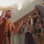 Потім вони зійшли з Оливкової гори і вирушили до Єрусалима. Учні постійно зустрічалися разом у верхній кімнаті одного з будинків і молилися. Вони чекали, поки Ісус дасть наступні вказівки.