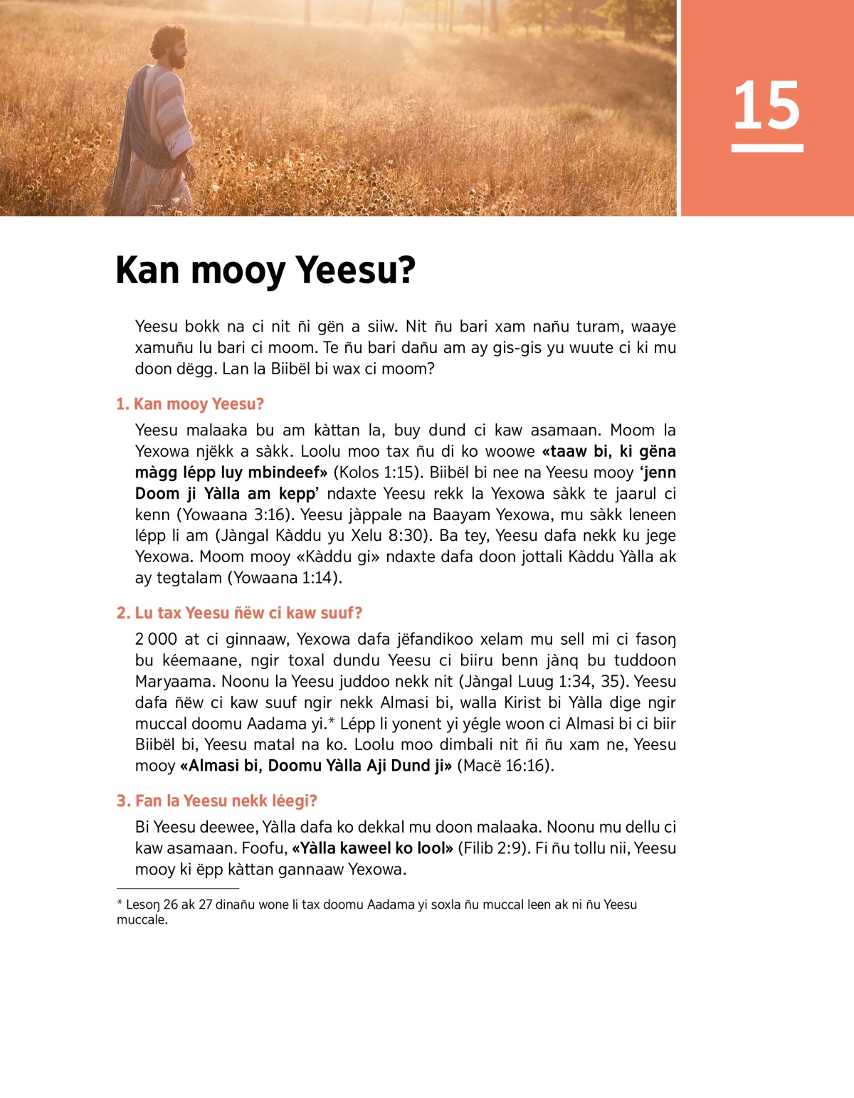 Biibël bi nee na, dafa am solo lool ñu jàng lu jëm ci Yeesu ak li Yàlla bëgg mu def. Jàngal Yowaana 14:6 ak 17:3. Boo paree, nga tontu ci laaj bii di topp: