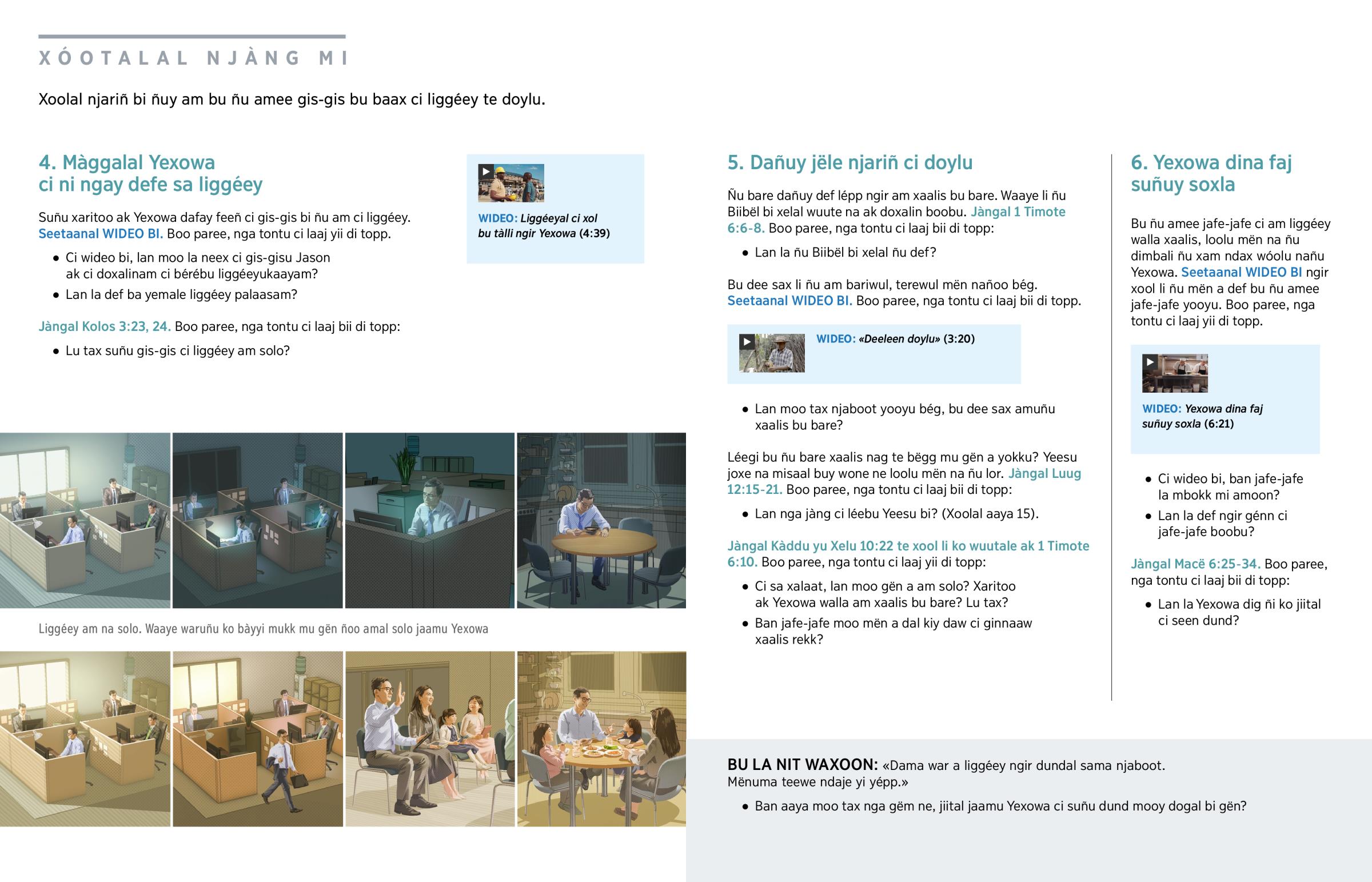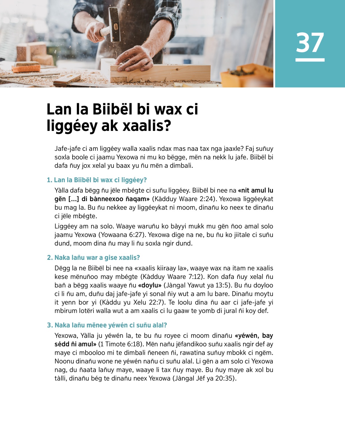 Jàngal Kolos 3:23, 24. Boo paree, nga tontu ci laaj bii di topp:
