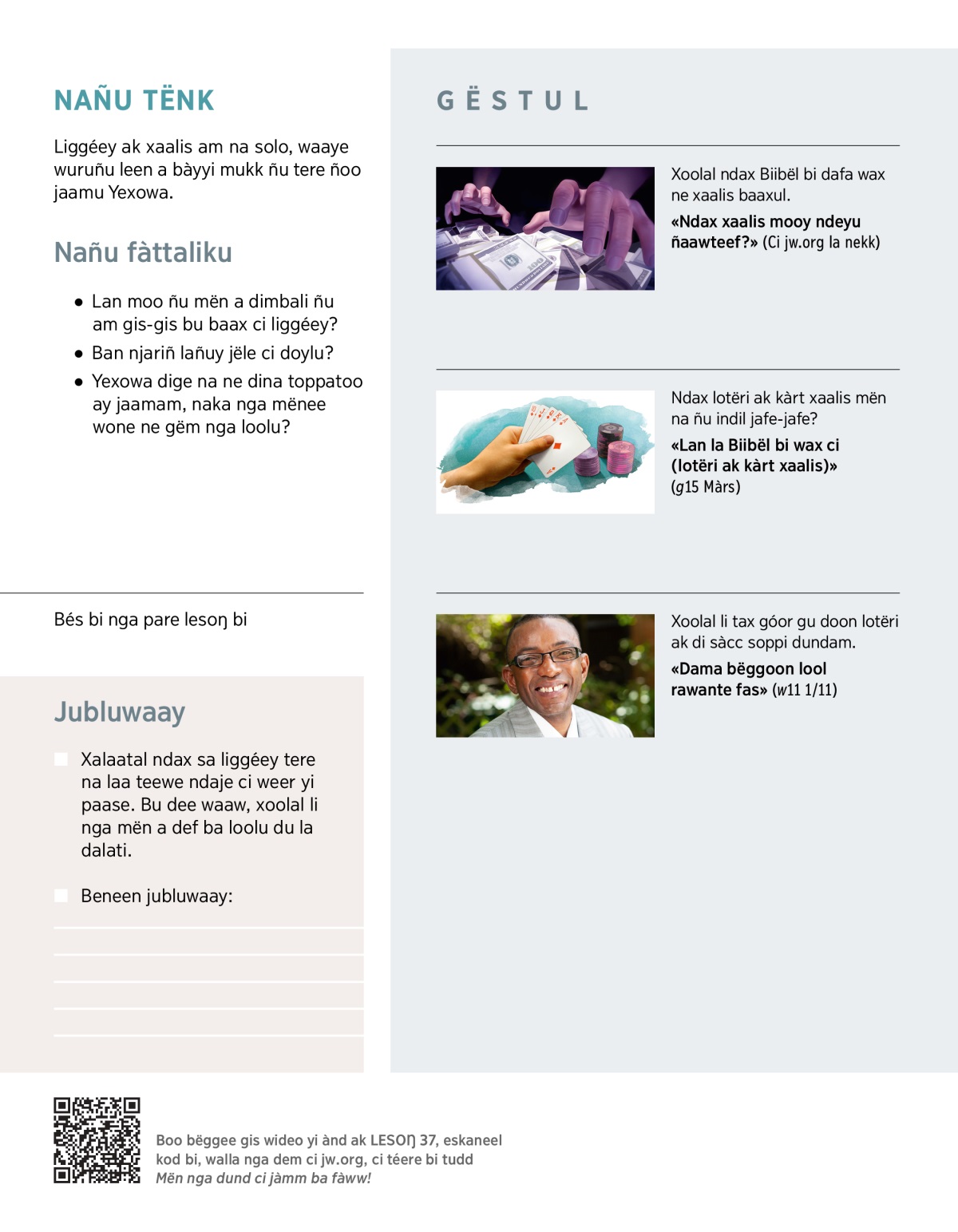 «Lan la Biibël bi wax ci (lotëri ak kàrt xaalis)» (g15 Màrs)