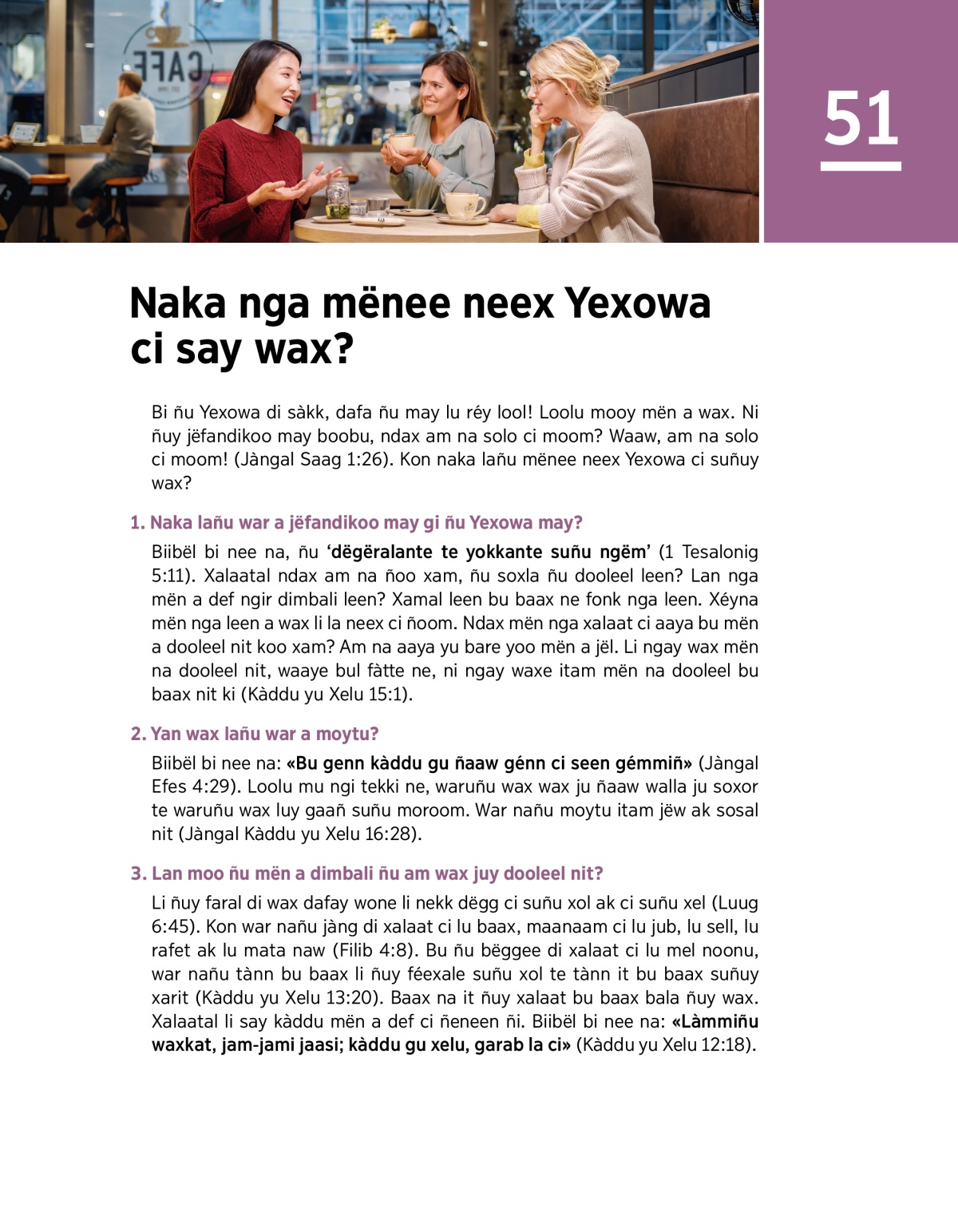 3. Lan moo ñu mën a dimbali ñu am wax juy dooleel nit?
