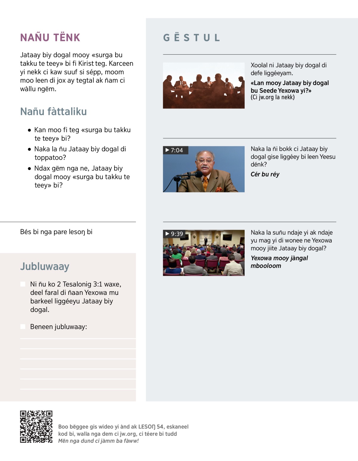 «Lan mooy Jataay biy dogal bu Seede Yexowa yi?» (Ci jw.org la nekk)