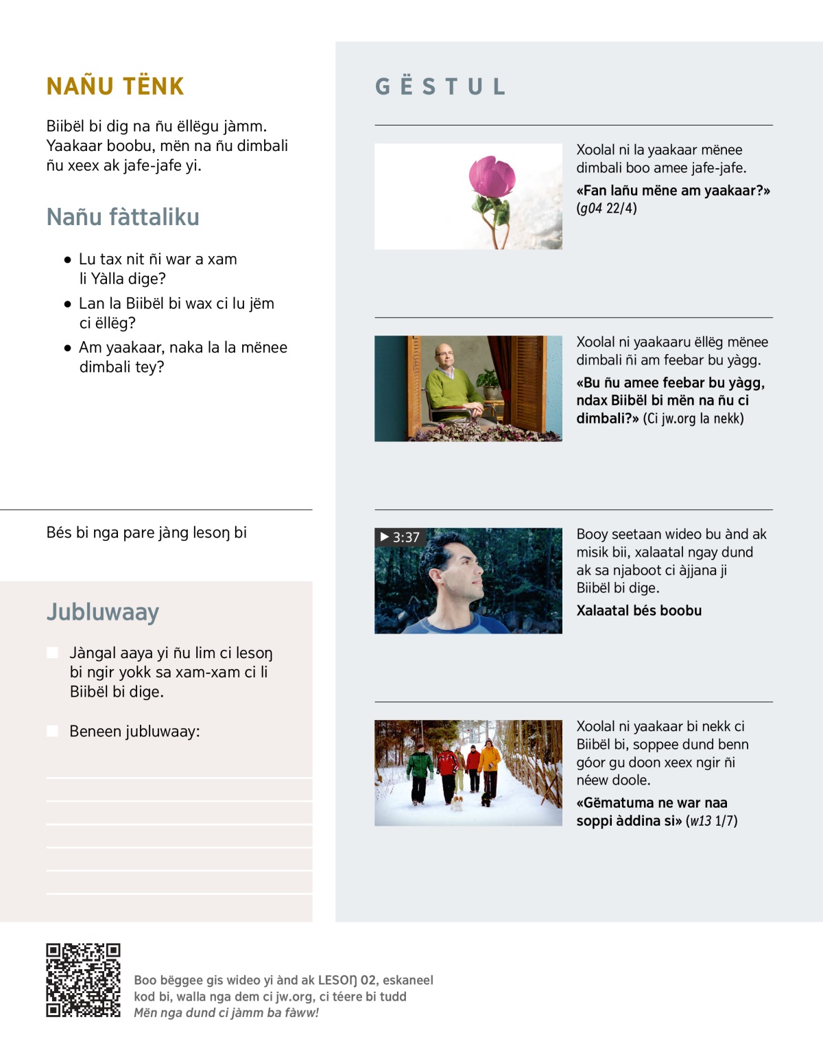 «Bu ñu amee feebar bu yàgg, ndax Biibël bi mën na ñu ci dimbali?» (Ci jw.org la nekk)