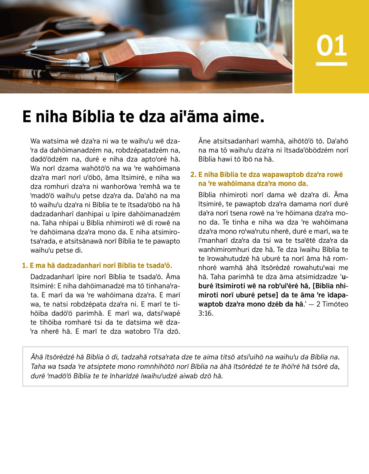 2. E niha Bíblia te dza wapawaptob dzaꞌra rowẽ na ꞌre wahöimana dzaꞌra mono da.