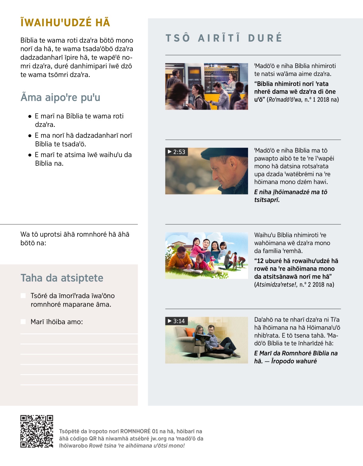 “Bíblia nhimiroti norĩ ꞌrata nherẽ dama wẽ dzaꞌra di õne uꞌö” (Roꞌmadöꞌöꞌwa, n.º 1 2018 na)