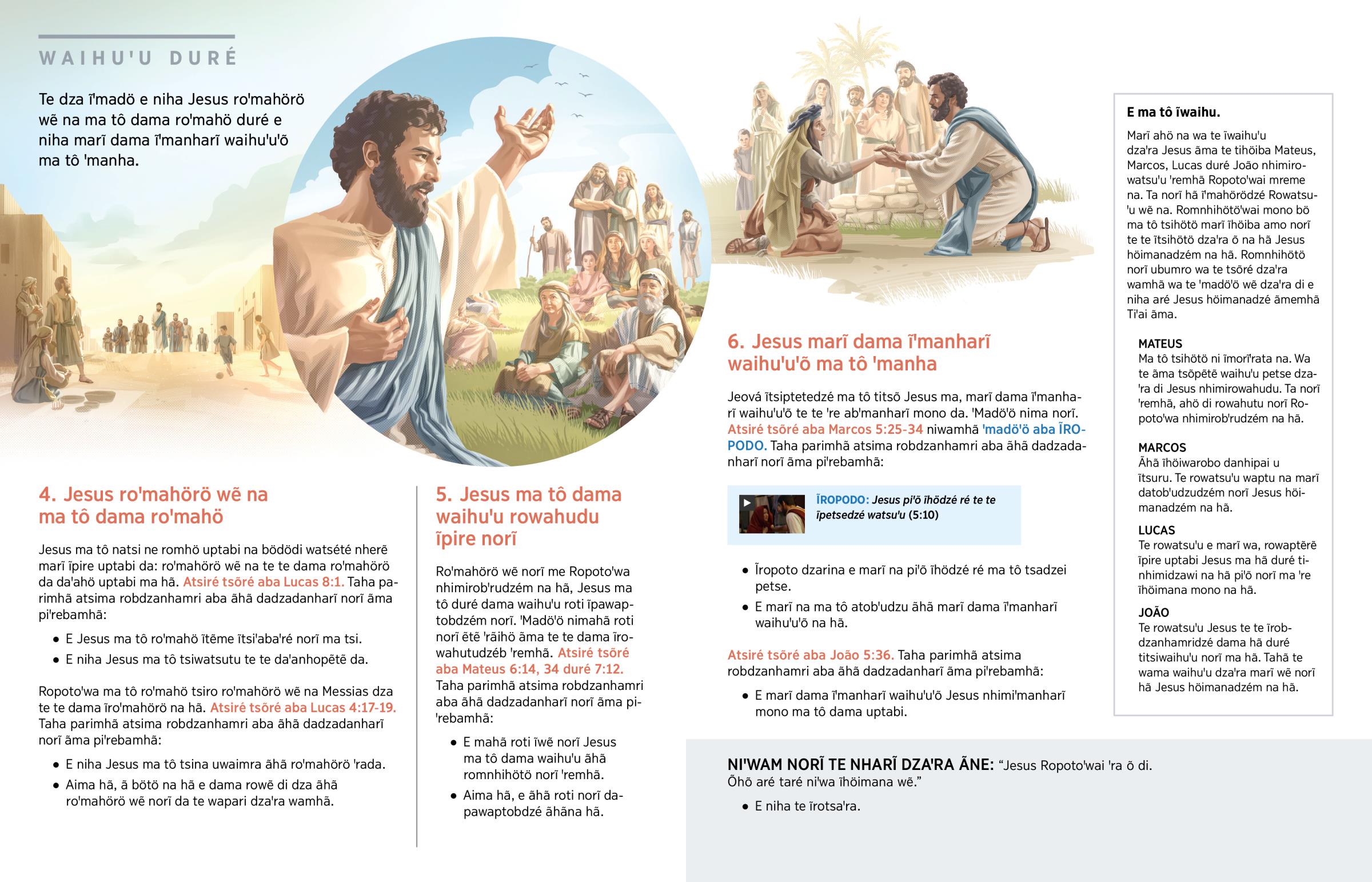 Jesus nhimiromhuri danhipai u ĩpire hã ‘Rowatsuꞌu wẽ Ĩté ... te te dama ꞌre ĩwatsuꞌu mono da hã’. (Tsõré na Lucas 4:43.) Jesus ma tô dama roꞌmahö roꞌmahörö wẽ na Ropotoꞌwa nhimirobꞌrudzém na hã. Ãhã Robꞌrudzé te dza dama uprotsi uburé ropire norĩ hã.a Tsiꞌubdatõ wahu wãiwa Jesus ma tô romhu tsimiꞌẽ na te te dama watsuꞌu da roꞌmahörö wẽ na. — Mateus 9:35.