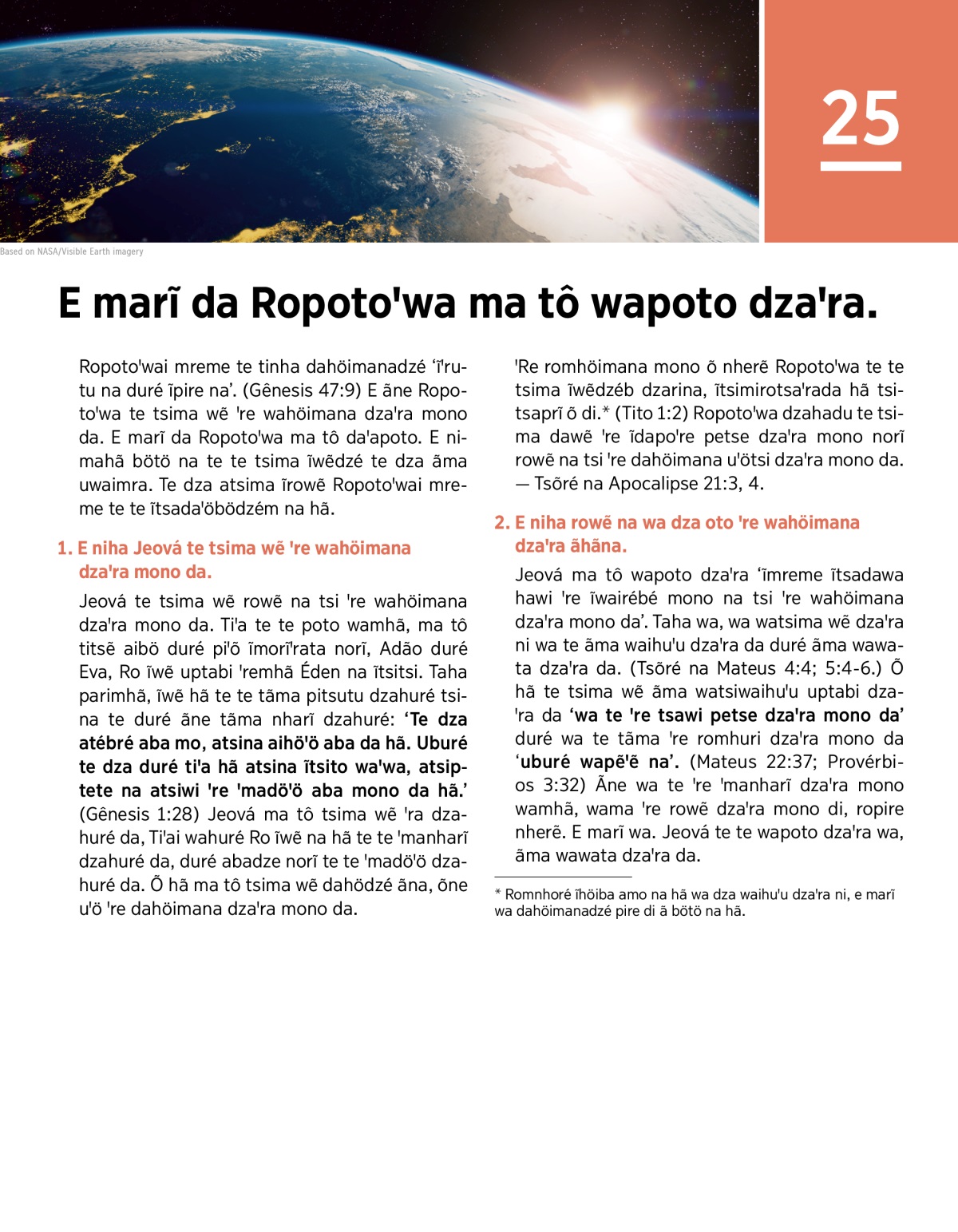 ꞌRe romhöimana mono õ nherẽ Ropotoꞌwa te te tsima ĩwẽdzéb dzarina, ĩtsimirotsaꞌrada hã tsitsaprĩ õ di.a (Tito 1:2) Ropotoꞌwa dzahadu te tsima dawẽ ꞌre ĩdapoꞌre petse dzaꞌra mono norĩ rowẽ na tsi ꞌre dahöimana uꞌötsi dzaꞌra mono da. — Tsõré na Apocalipse 21:3, 4.
