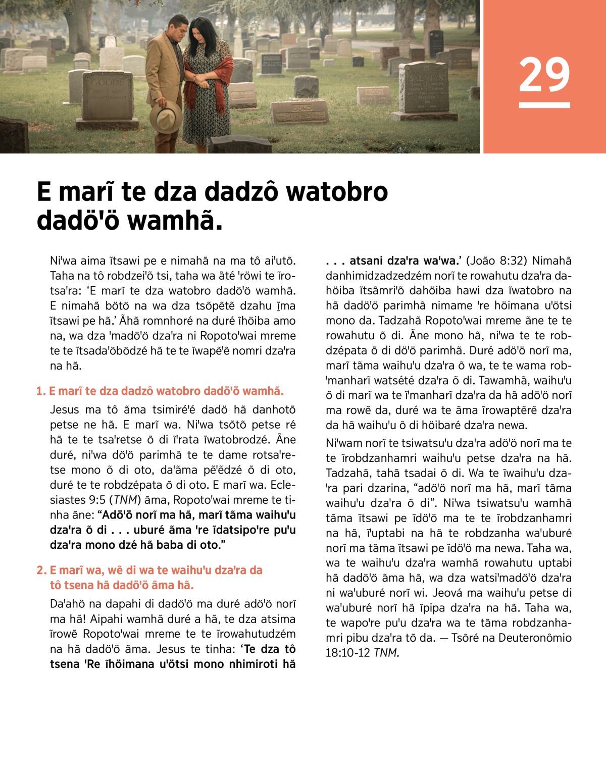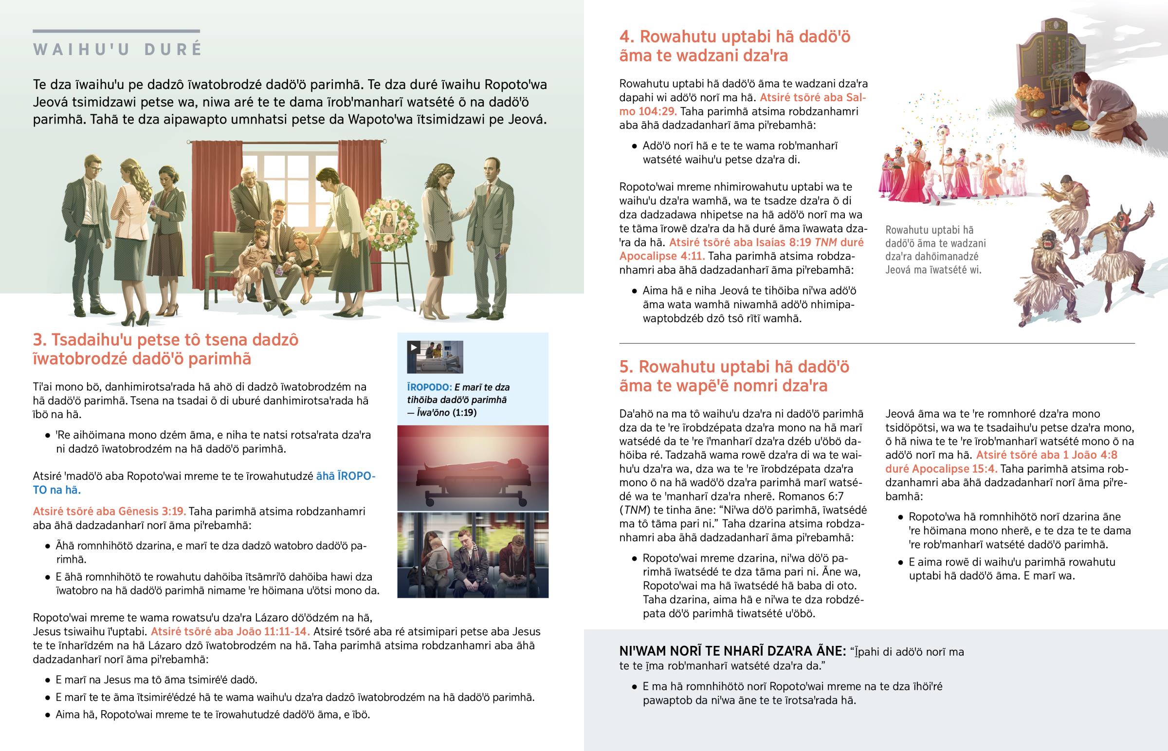 Jesus ma tô ãma tsimiréꞌé dadö hã danhotõ petse ne hã. E marĩ wa. Niꞌwa tsõtõ petse ré hã te te tsaꞌretse õ di ĩꞌrata ĩwatobrodzé. Ãne duré, niꞌwa döꞌö parimhã te te dame rotsaꞌretse mono õ di oto, daꞌãma pẽꞌẽdzé õ di oto, duré te te robdzépata õ di oto. E marĩ wa. Eclesiastes 9:5 (TNM) ãma, Ropotoꞌwai mreme te tinha ãne: “Adöꞌö norĩ ma hã, marĩ tãma waihuꞌu dzaꞌra õ di . . . uburé ãma ꞌre ĩdatsipoꞌre puꞌu dzaꞌra mono dzé hã baba di oto.”