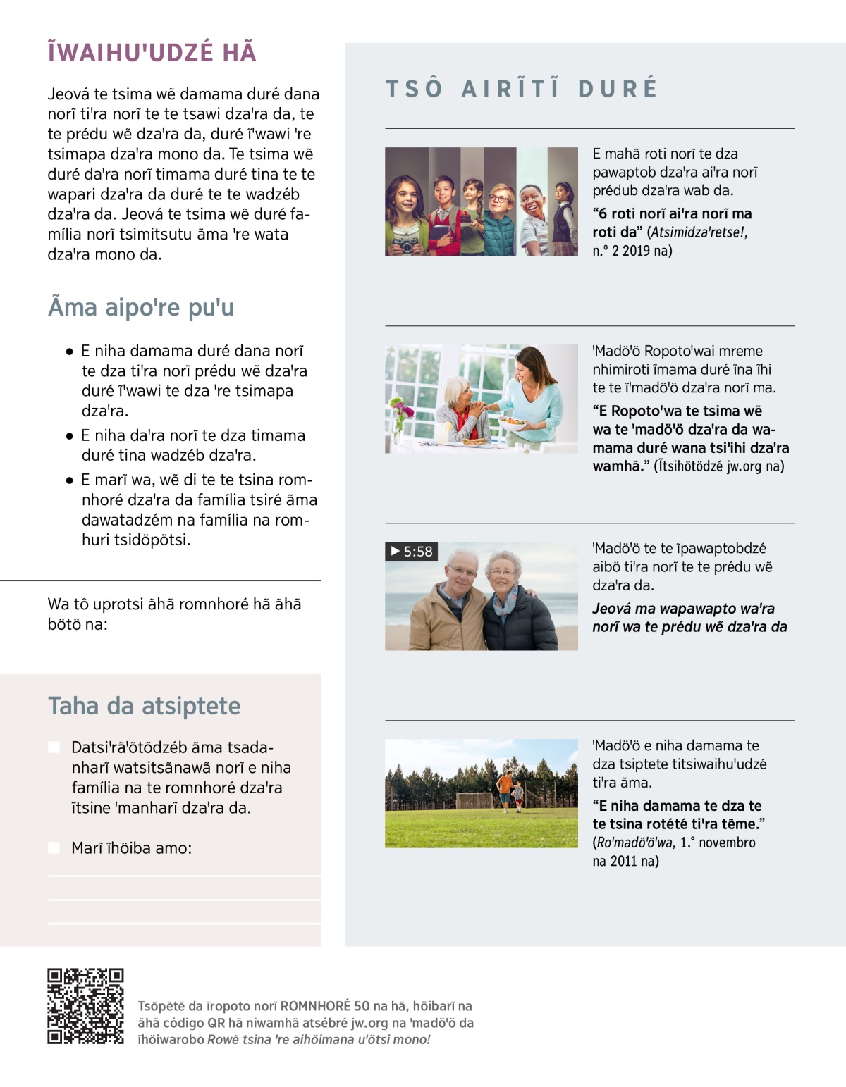 “E niha te dza ĩroti aiꞌra norĩ ma hã datsina dahöimana ãma hã.” (Atsimidzaꞌretse!, n.º 5 2016 na)