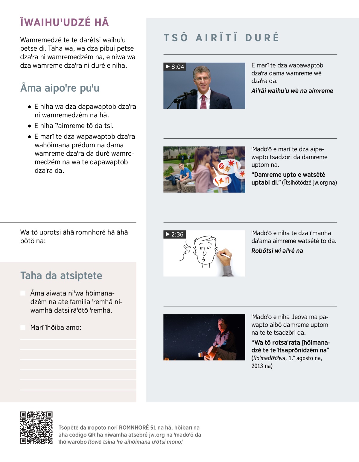 • E niha wamremedzém na wa dza tãma rowẽ dzaꞌra ni Jeová ma.
