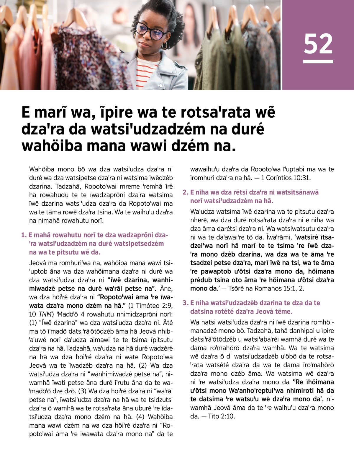 “E marĩ aiꞌudza norĩ te aiꞌãma dama höiꞌré dzaꞌra.” (Ĩtsihötödzé jw.org na)