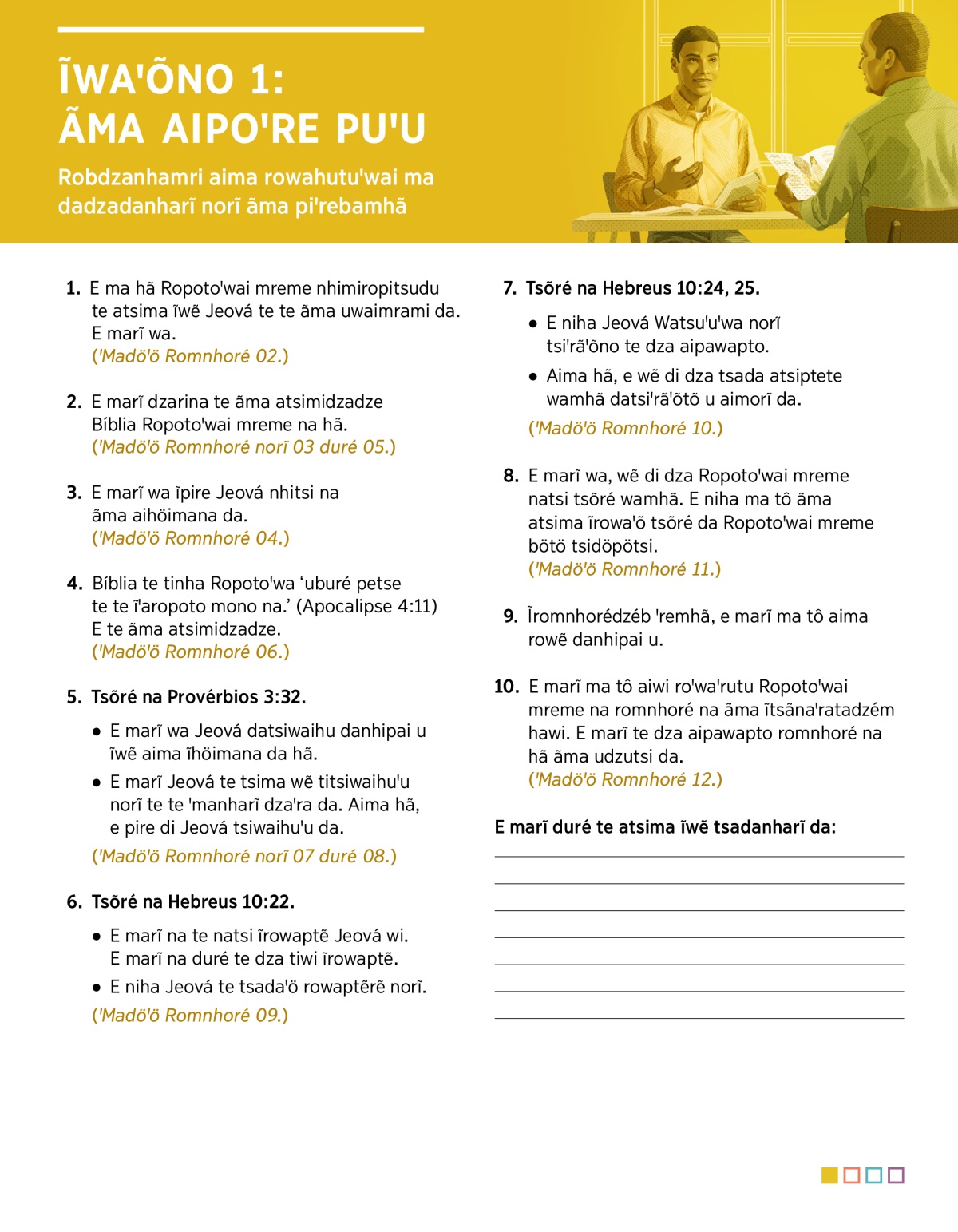 E ma hã Ropotoꞌwai mreme nhimiropitsudu te atsima ĩwẽ Jeová te te ãma uwaimrami da. E marĩ wa.