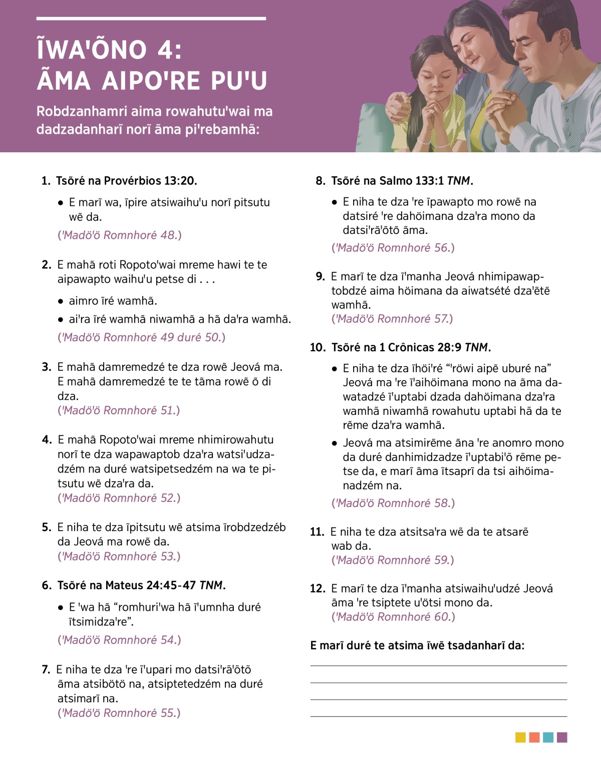 E mahã damremedzé te dza rowẽ Jeová ma. E mahã damremedzé te te tãma rowẽ õ di dza.