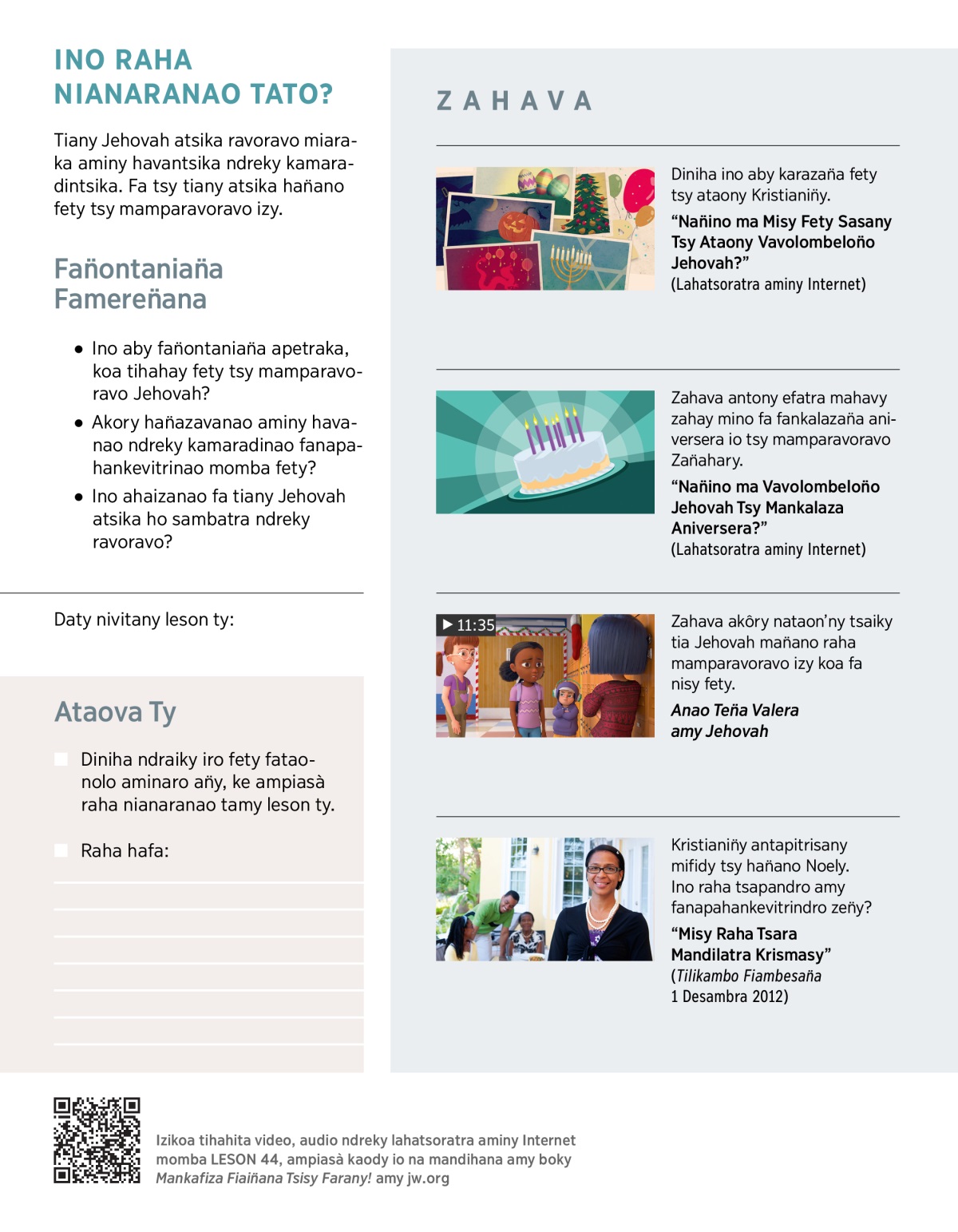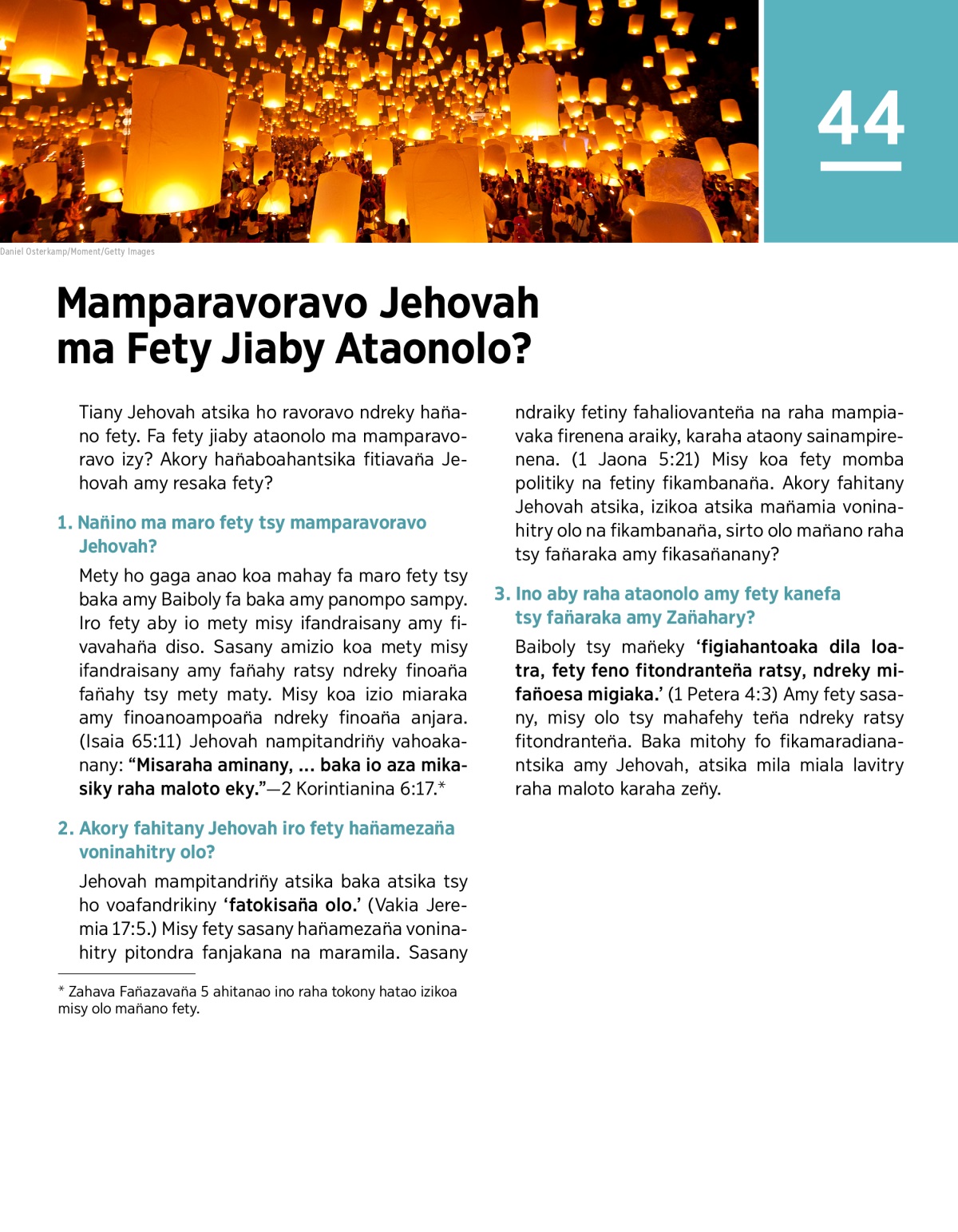 “Nan̈ino ma Misy Fety Sasany Tsy Ataony Vavolombelon̈o Jehovah?” (Lahatsoratra aminy Internet)