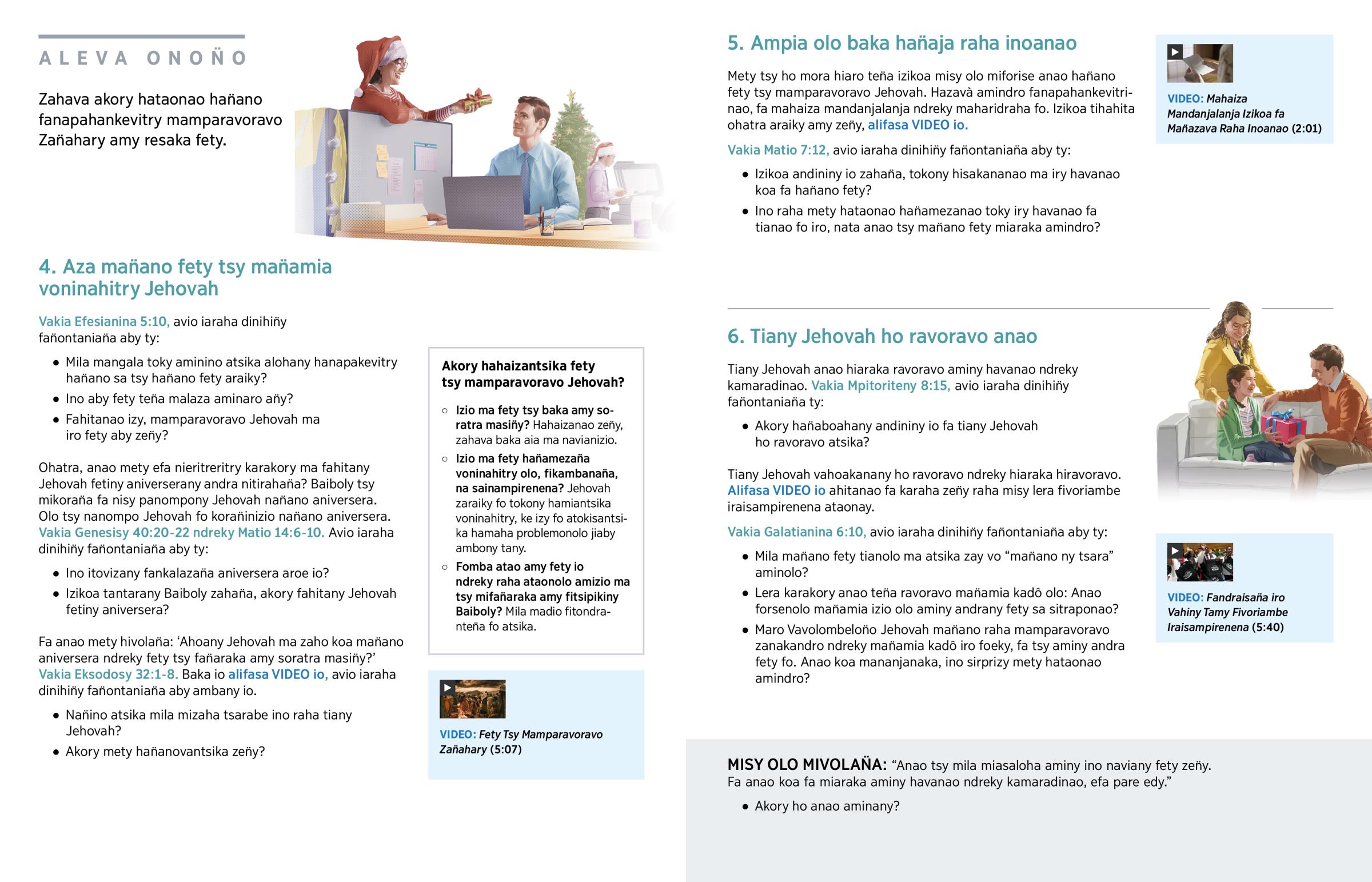 Tiany Jehovah atsika ravoravo miaraka aminy havantsika ndreky kamaradintsika. Fa tsy tiany atsika han̈ano fety tsy mamparavoravo izy.