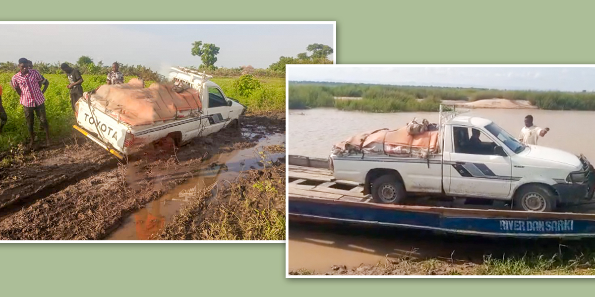 在尼日利亚,弟兄为了运送救援物资,需要开车经过泥泞的道路,以及水位高涨的河流