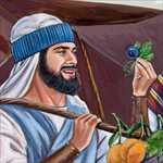 看看这些人抬着的水果。看那串葡萄多么大。要两个人用担子才能把这些水果抬起来。再看看那些无花果和石榴。这些美味的水果是从哪里来的?这些水果来自迦南地。你还记得,亚伯拉罕、以撒和雅各曾经住在迦南。但由于那里发生饥荒,雅各才和家人迁到埃及去。大约216年之后,摩西带领以色列人返回迦南。他们来到旷野一个称为加低斯的地方。