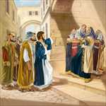 公元前3年左右,加百列要去传达第一个信息了。他要去哪里呢?当时有一位祭司名叫撒迦利亚,住在耶路撒冷附近的犹大山区。他和妻子伊利莎白年纪很大了,一直都没有孩子。一天,撒迦利亚到了耶路撒冷,去上帝的圣殿值班,担任祭司的工作。他在圣殿里时,加百列突然出现在香坛旁。