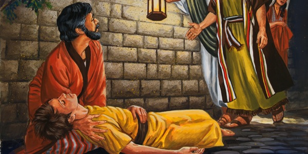 哎哟!这里发生了什么事?躺在地上的男孩伤得很重吗?看哪!有些人从屋里走出来,其中一个是保罗!你看到提摩太吗?男孩从窗口跌了下来吗?