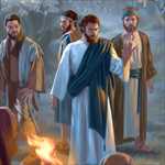 上个故事说到,一些使徒看到了复活后的耶稣。后来有一天,彼得决定到加利利海捕鱼。多马、雅各、约翰和另外几个门徒也跟他一起去了。那天晚上,他们辛苦地捕了一整夜的鱼,却什么收获也没有。