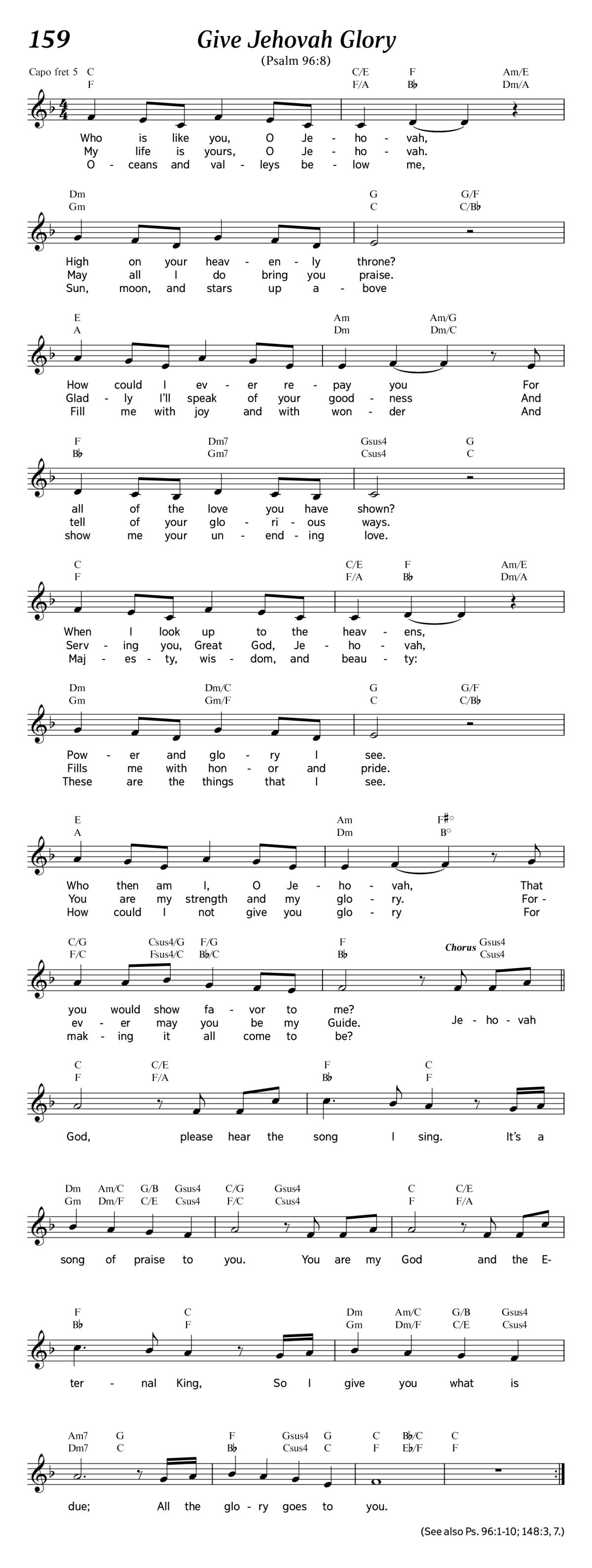 Jehovah God, please hear the song I sing.