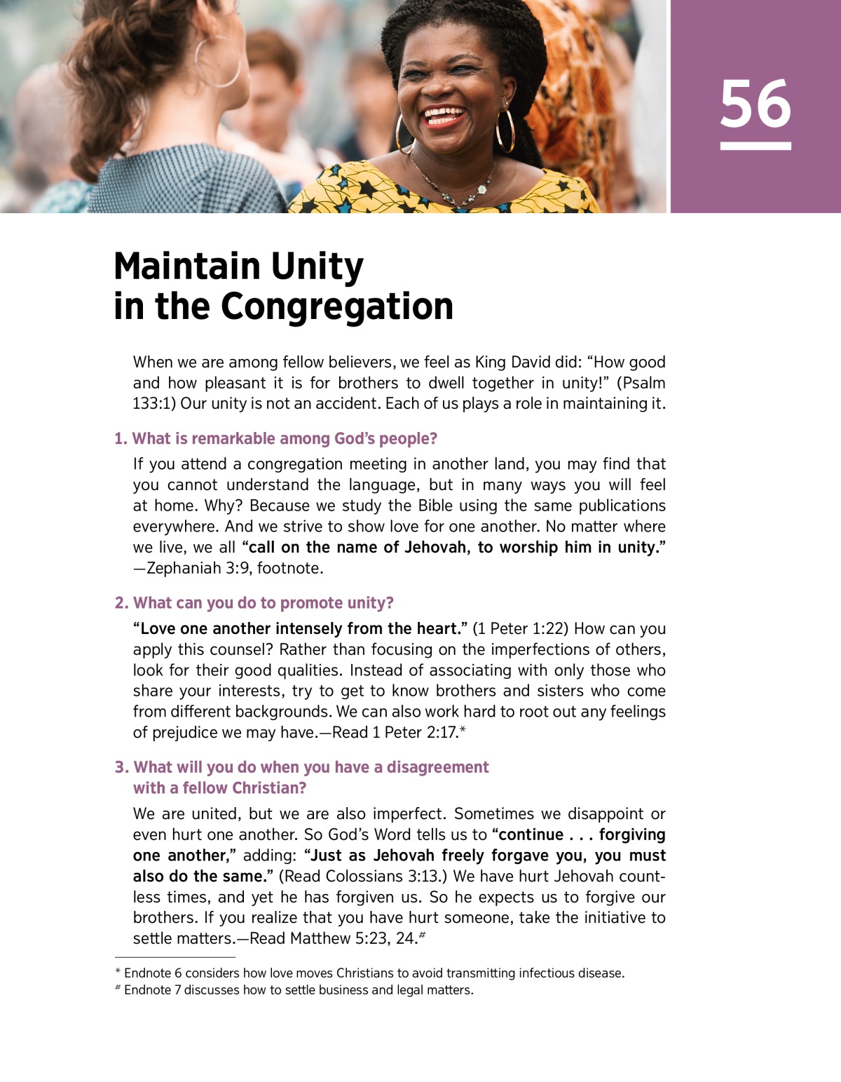 You can help to maintain unity in the congregation by being forgiving and showing love for all your brothers and sisters.